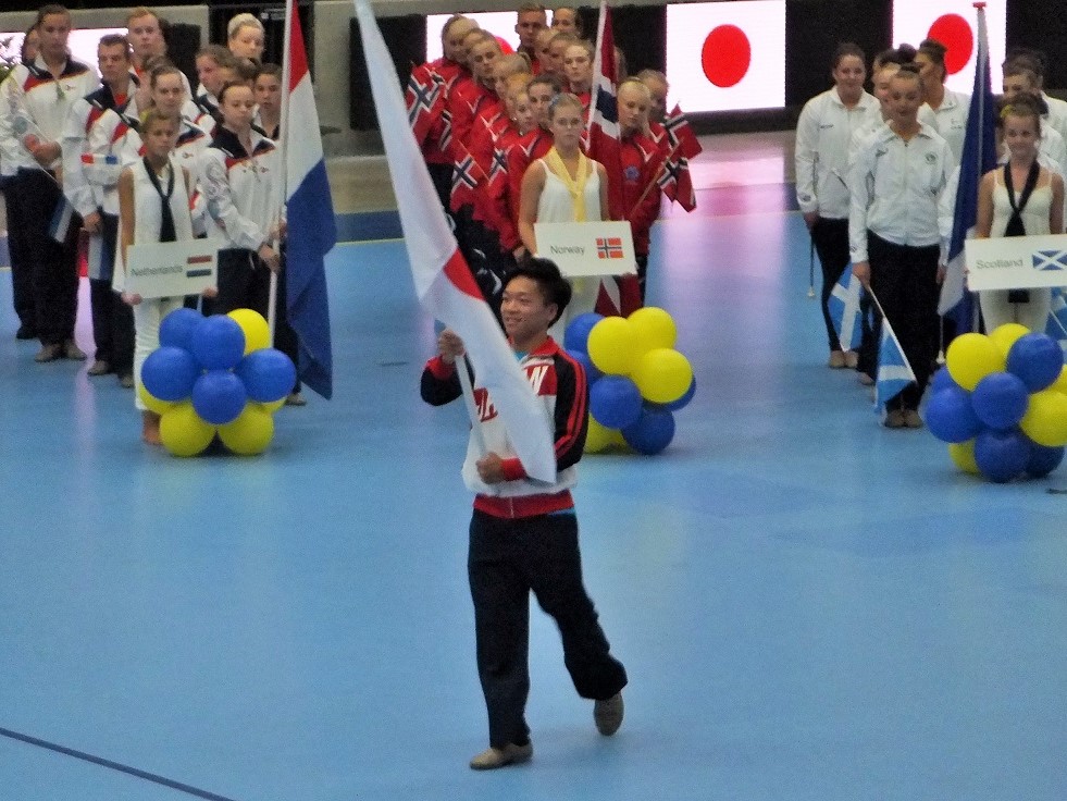 澄み渡る空の下、日本代表団全員が異国の地スウェーデン(ヘルシンボリ)に集合した。 長時間の移動や時差による疲労を感じさせない、力強い掛け声で結団式は始まった。 胸に刻まれたJAPANの文字を背負い、今までの練習の成果を十二分に発揮することを誓い結団式は終了した。 各選手は、11日から開催される出場種目に向けて、大会会場であるヘルシンボリアリーナにてコスチュームチェック・ミュージックテストをおこない、最終調整を開始した。 夕方7時からアスリートパーティーが行われた。日本選手も各国の選手と、共にバトンを愛するものとして交流を深めた。 明日はいよいよ開会式。これまでの練習と熱い想いを胸に集まった選手の集う、世界大会の幕開けです。 | ![]() | ||